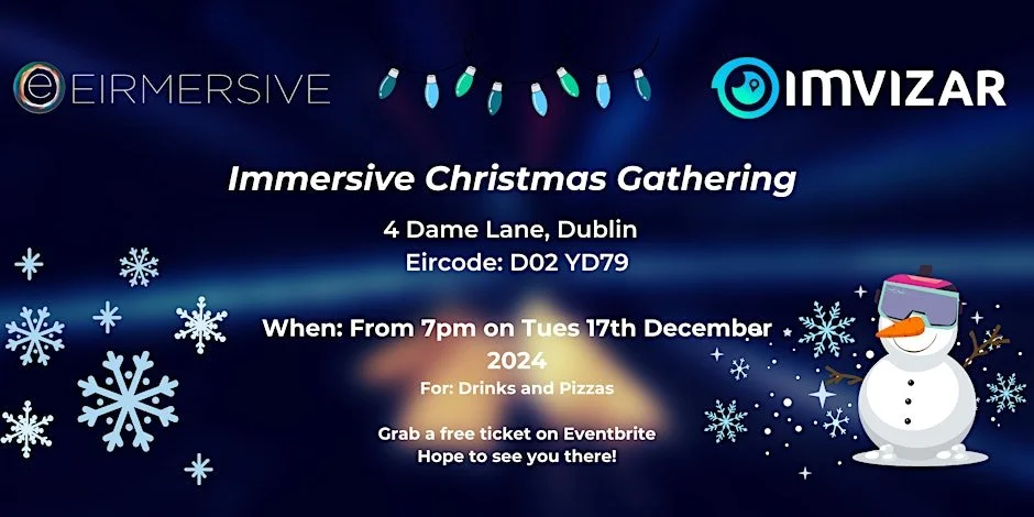 Eirmersive and (founding member) Imvizar welcome you to enjoy pizzas and beer at 4 Dame Lane, Dublin on Tuesday 17th December. Get into the holiday spirit and connect with the brilliant minds shaping the future of immersive technology.